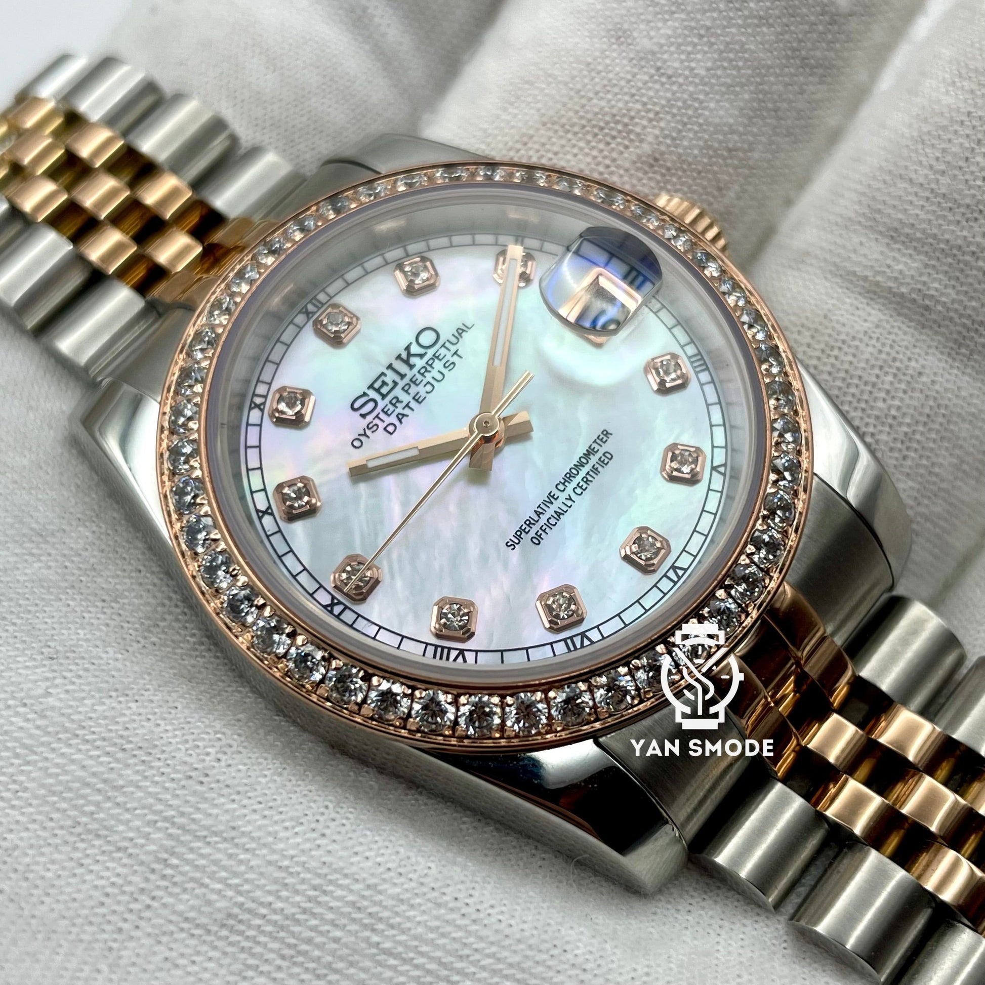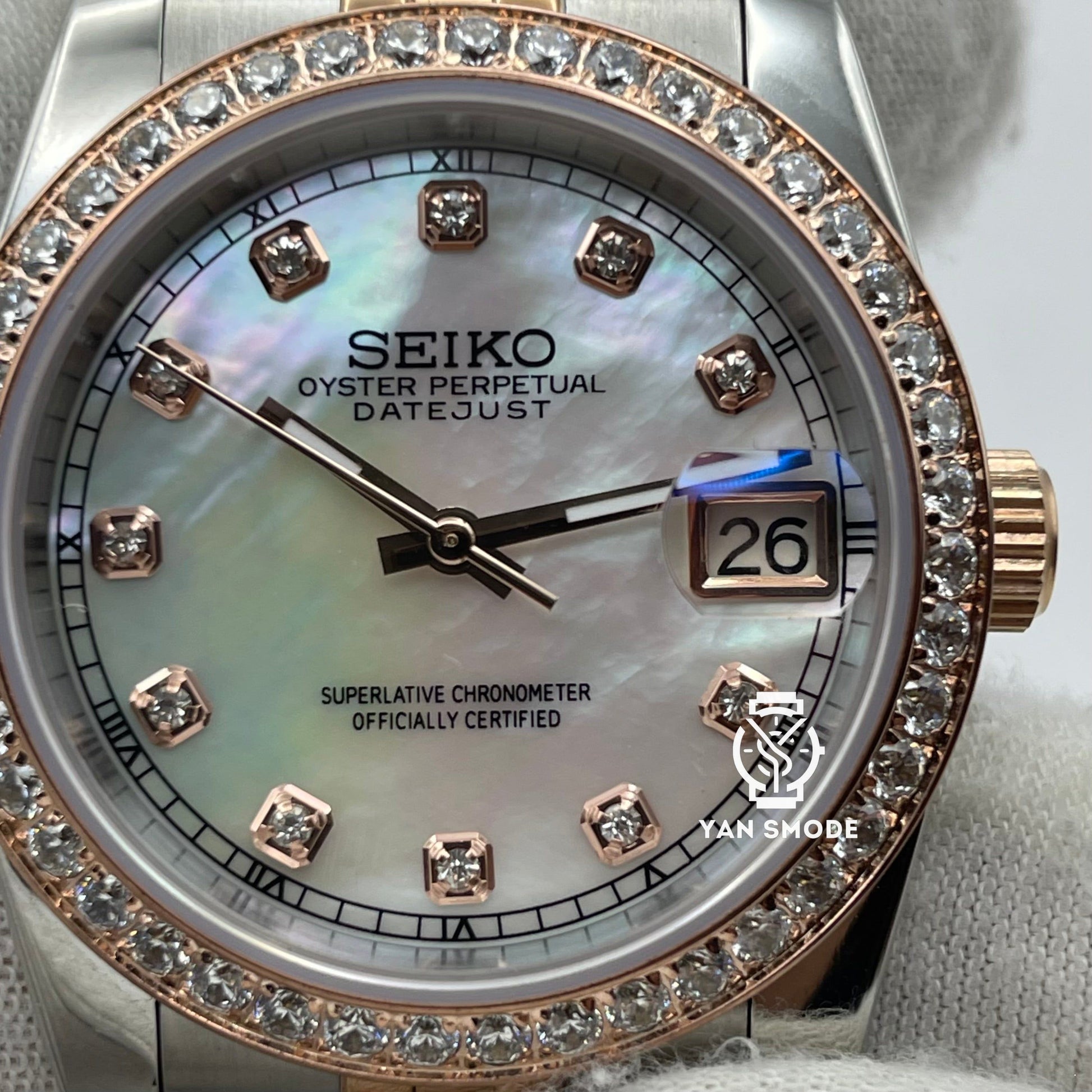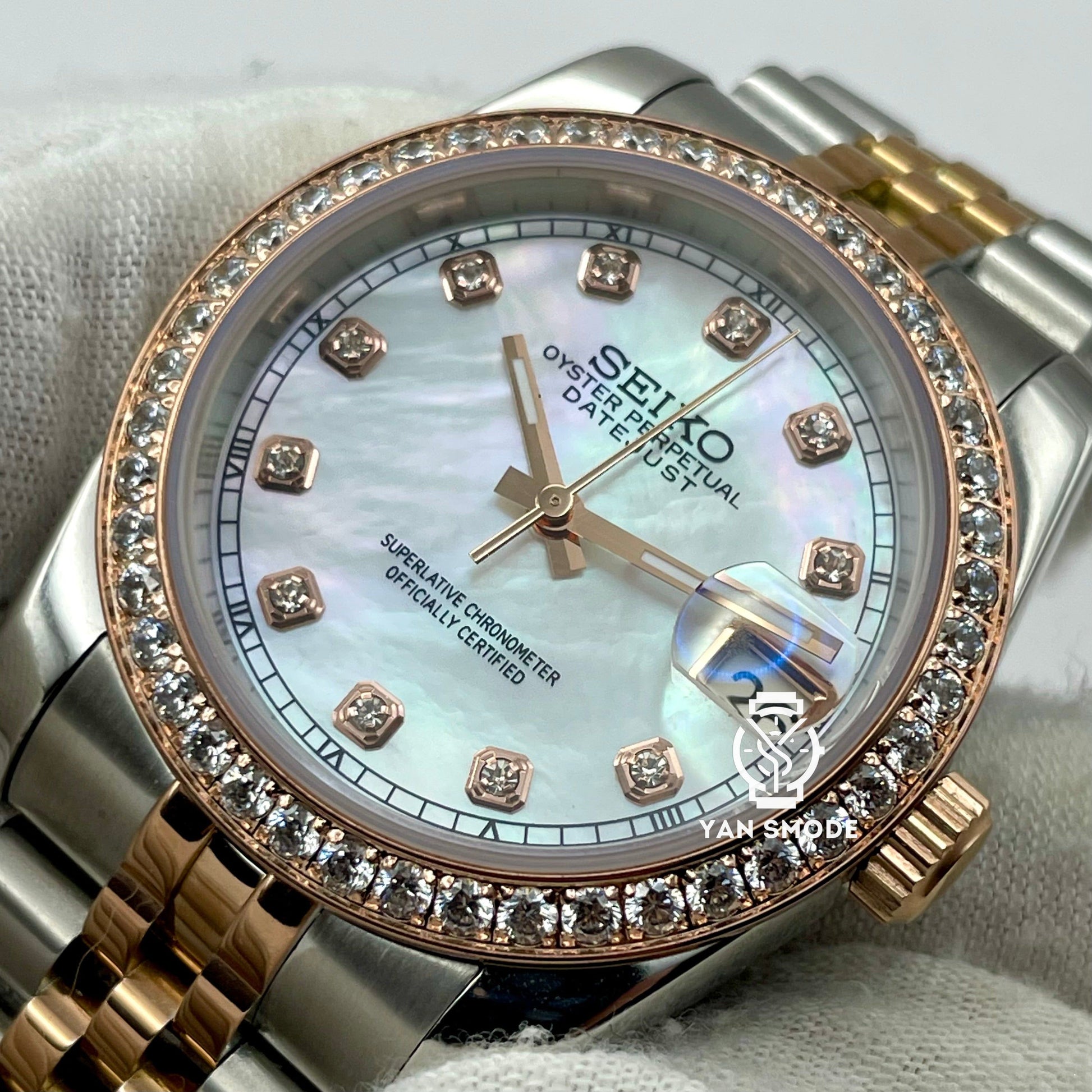 Date Just Nacré Or Rose Orné de Diamants