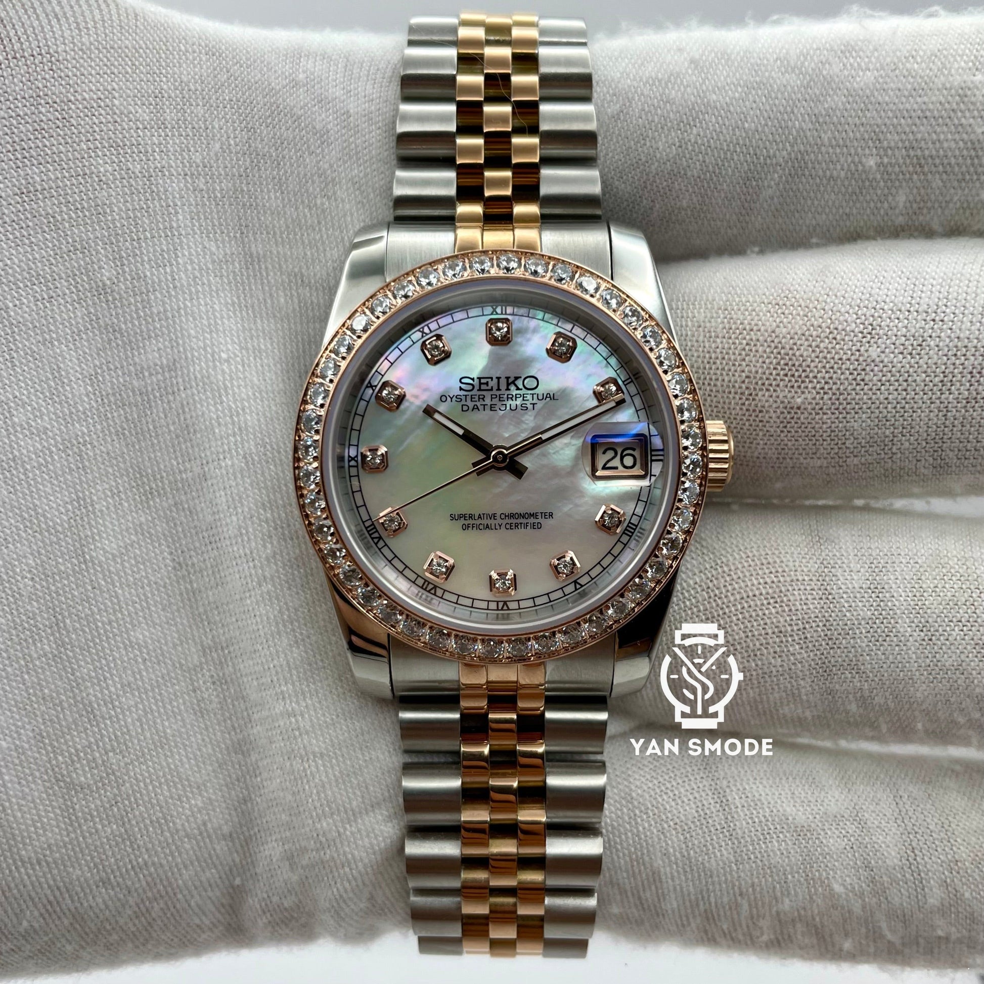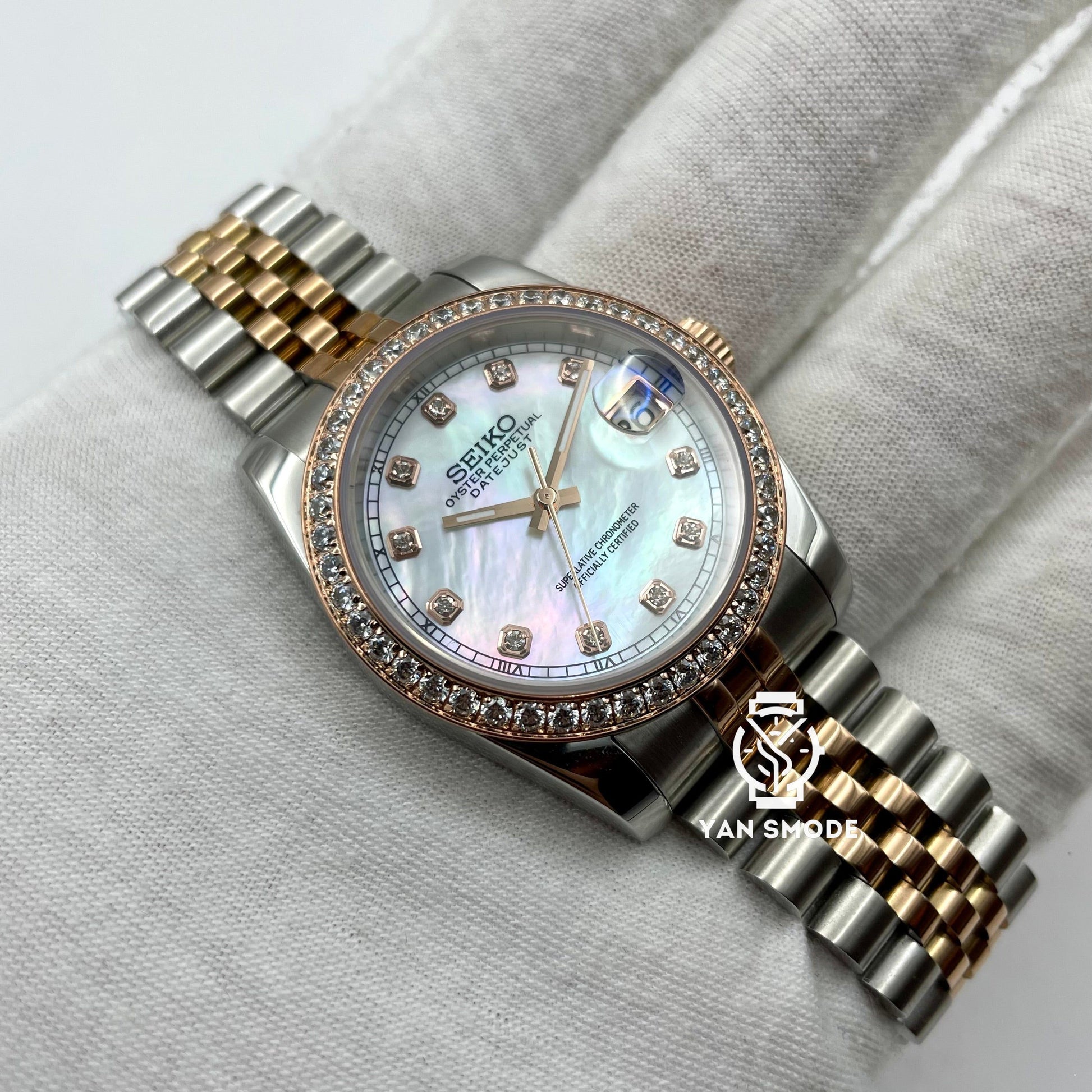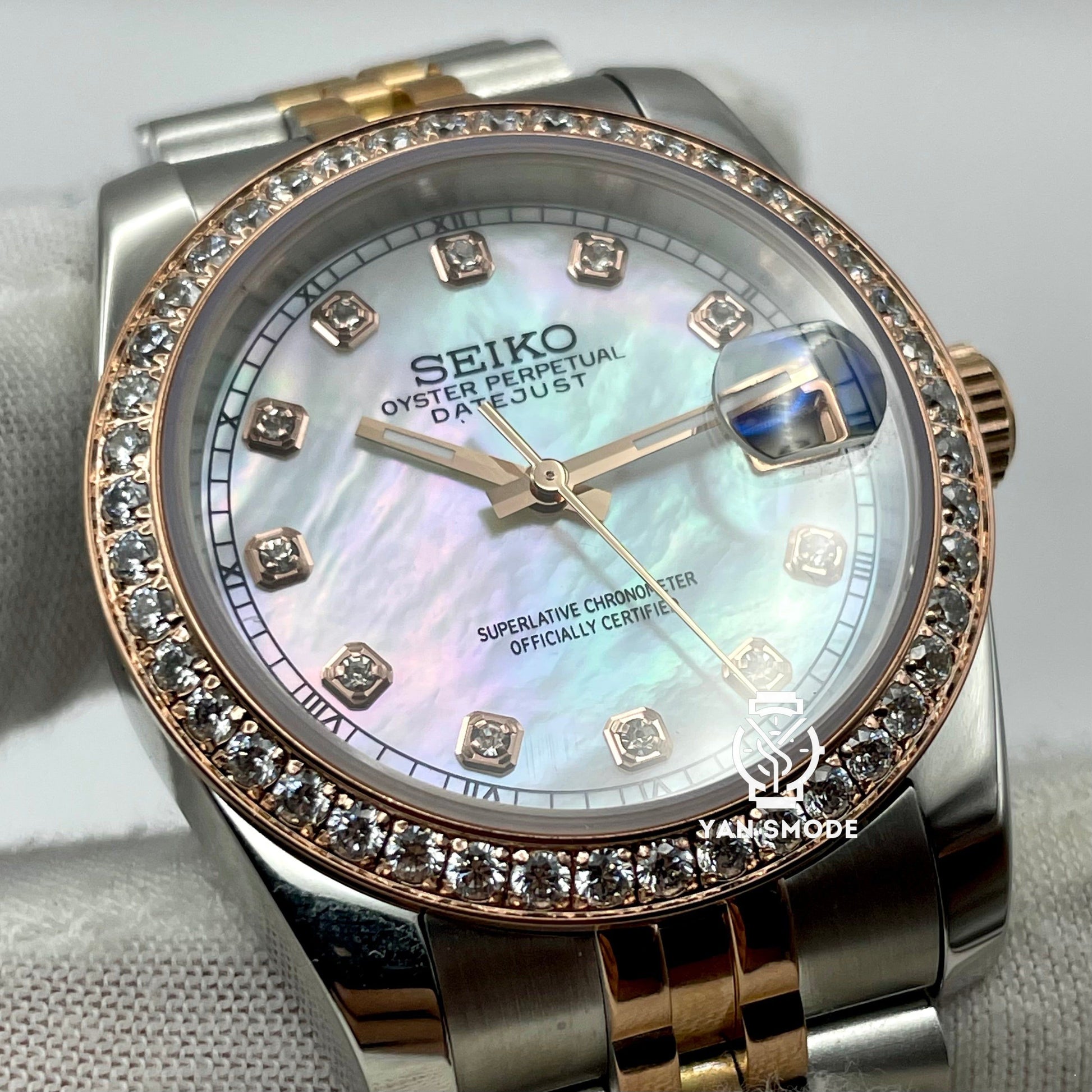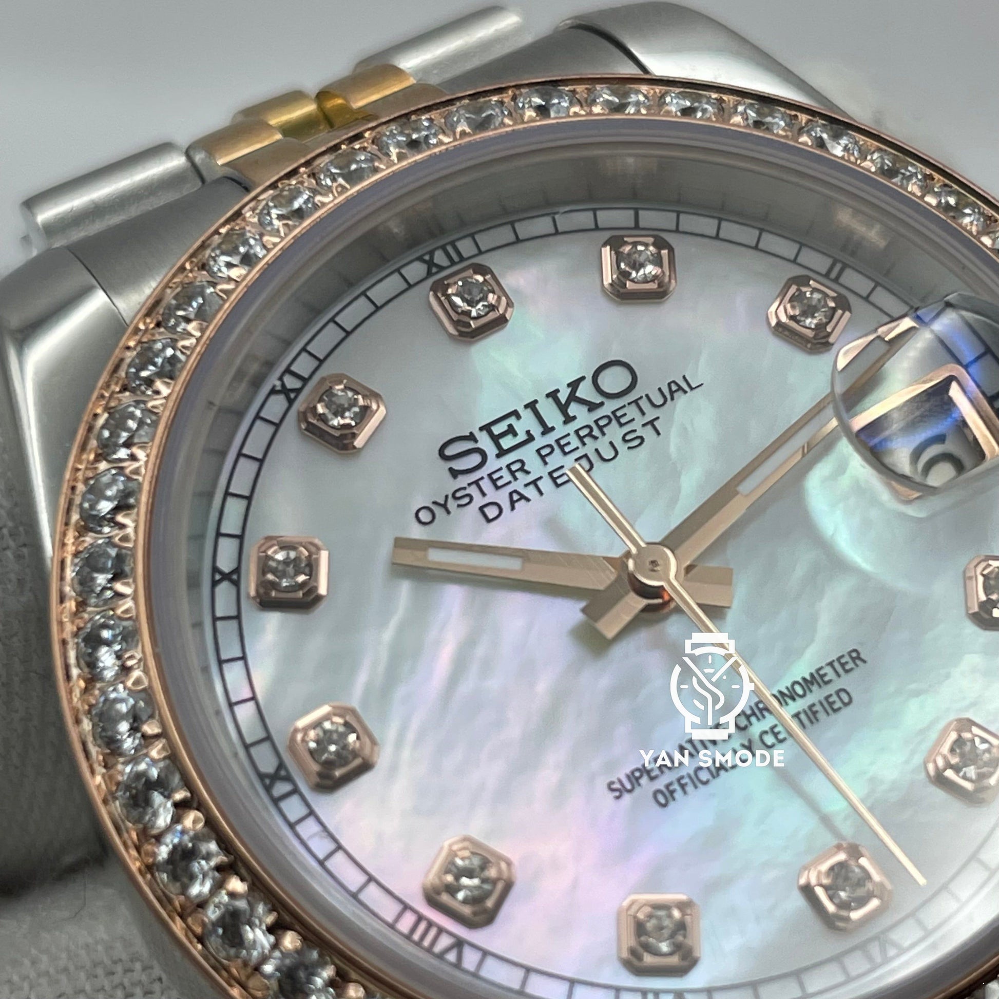 Date Just Nacré Or Rose Orné de Diamants