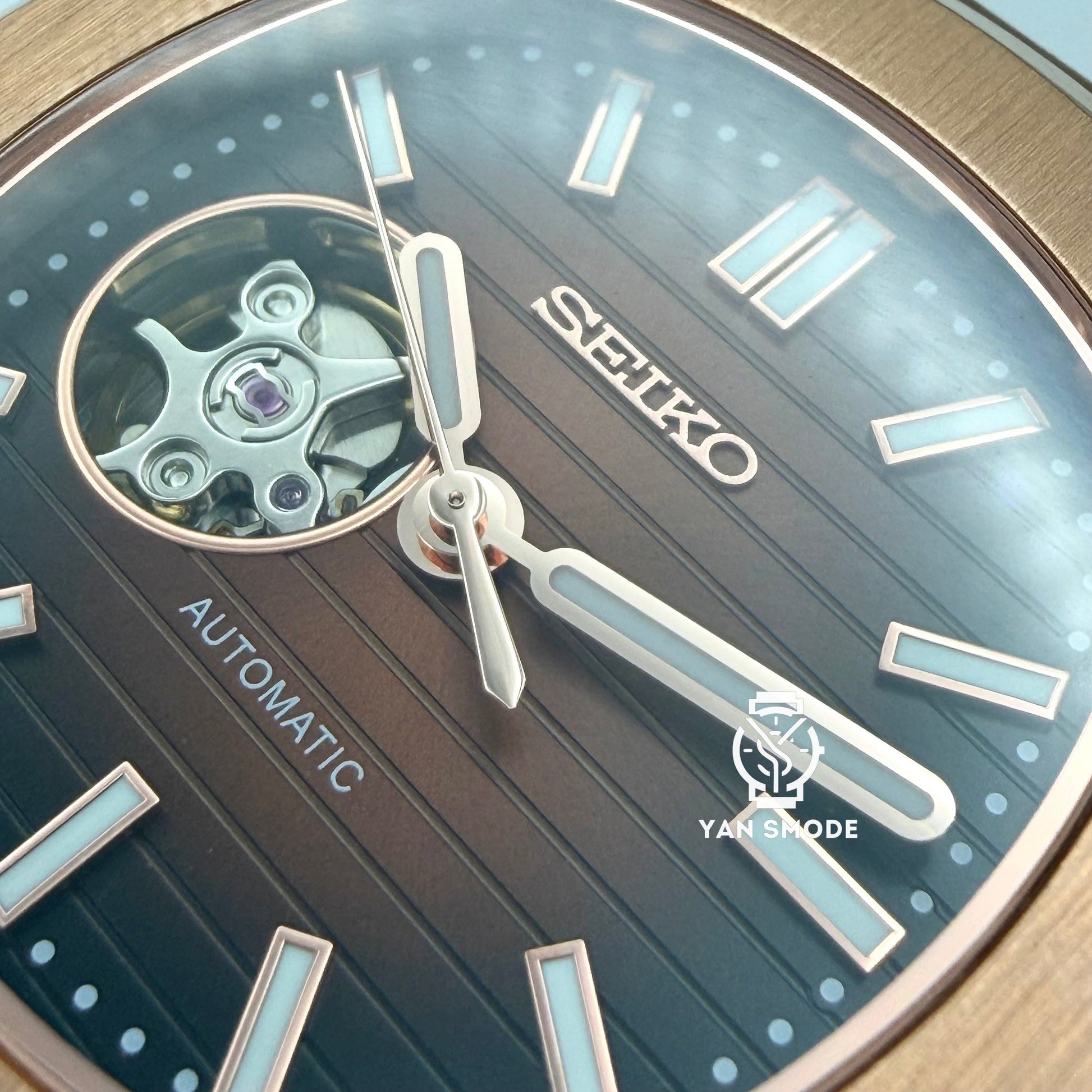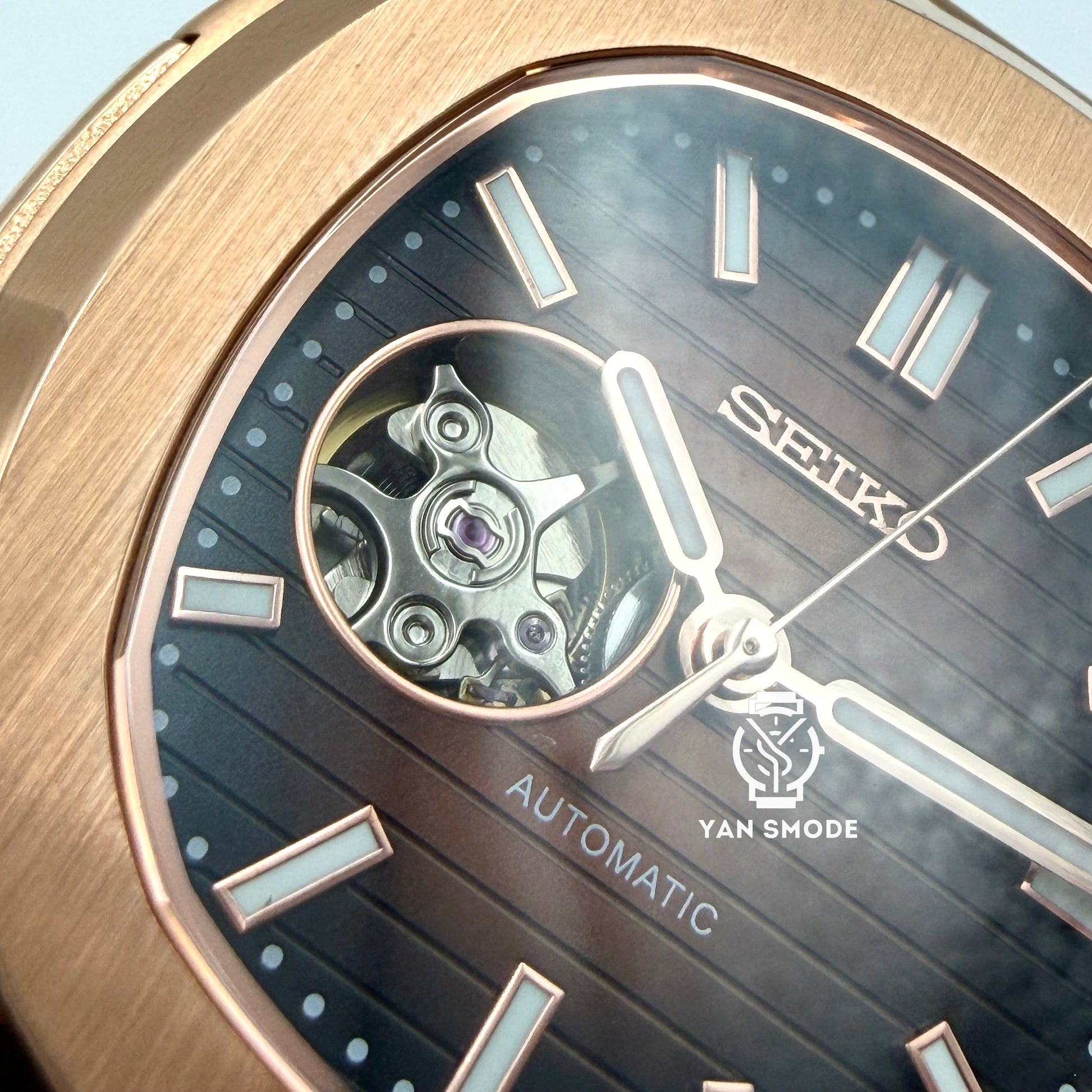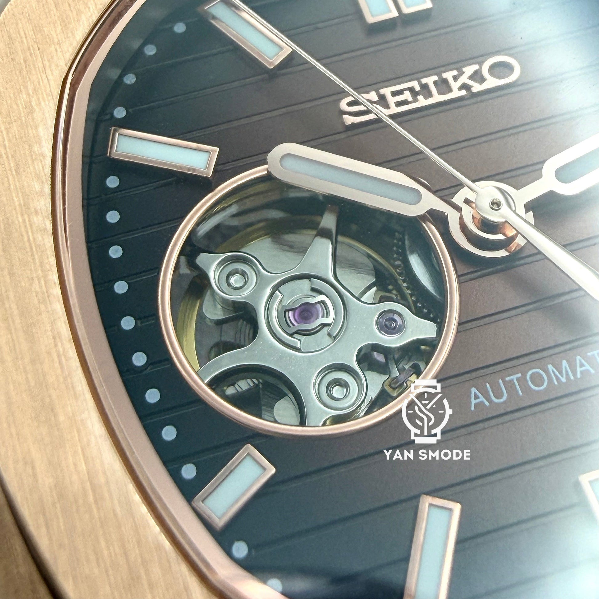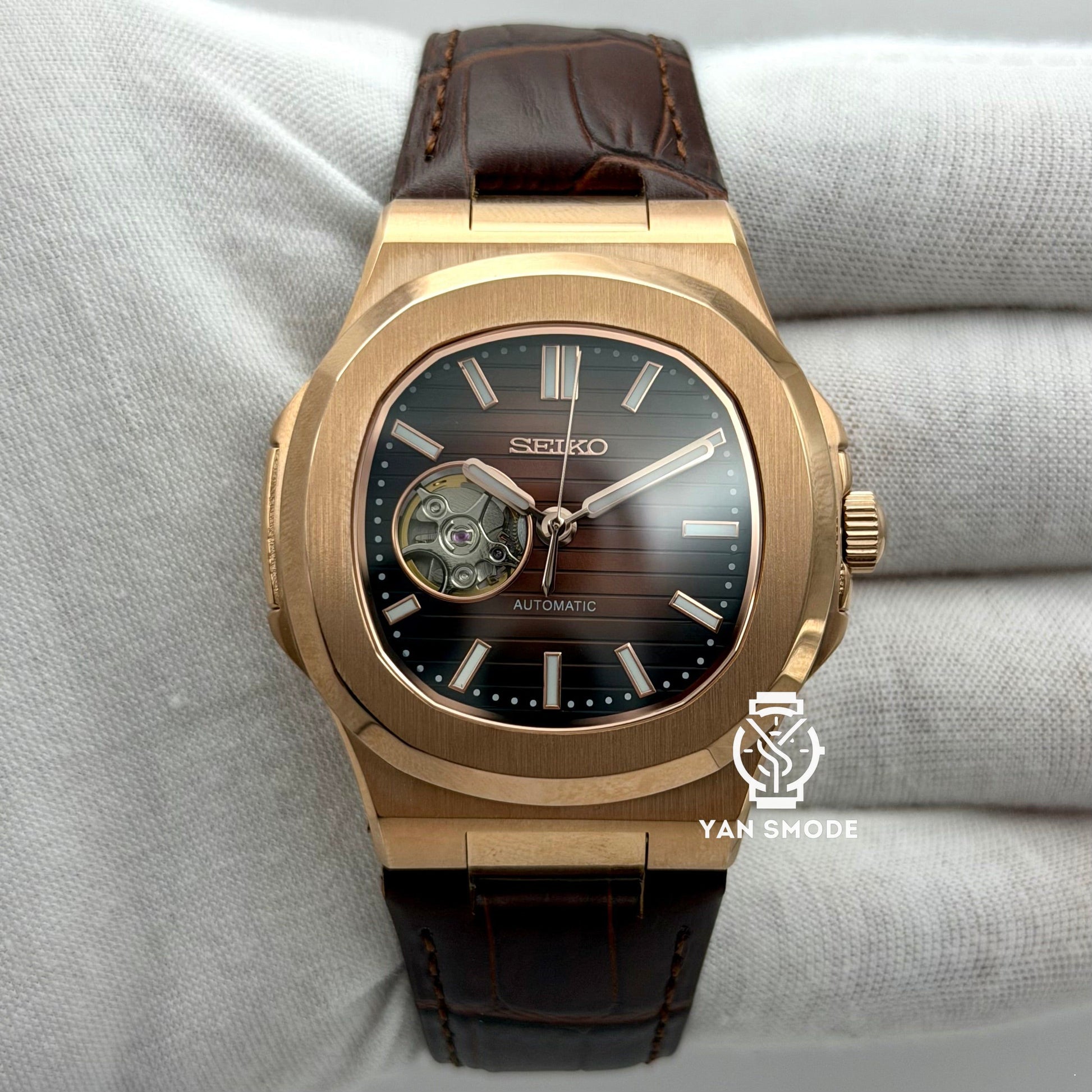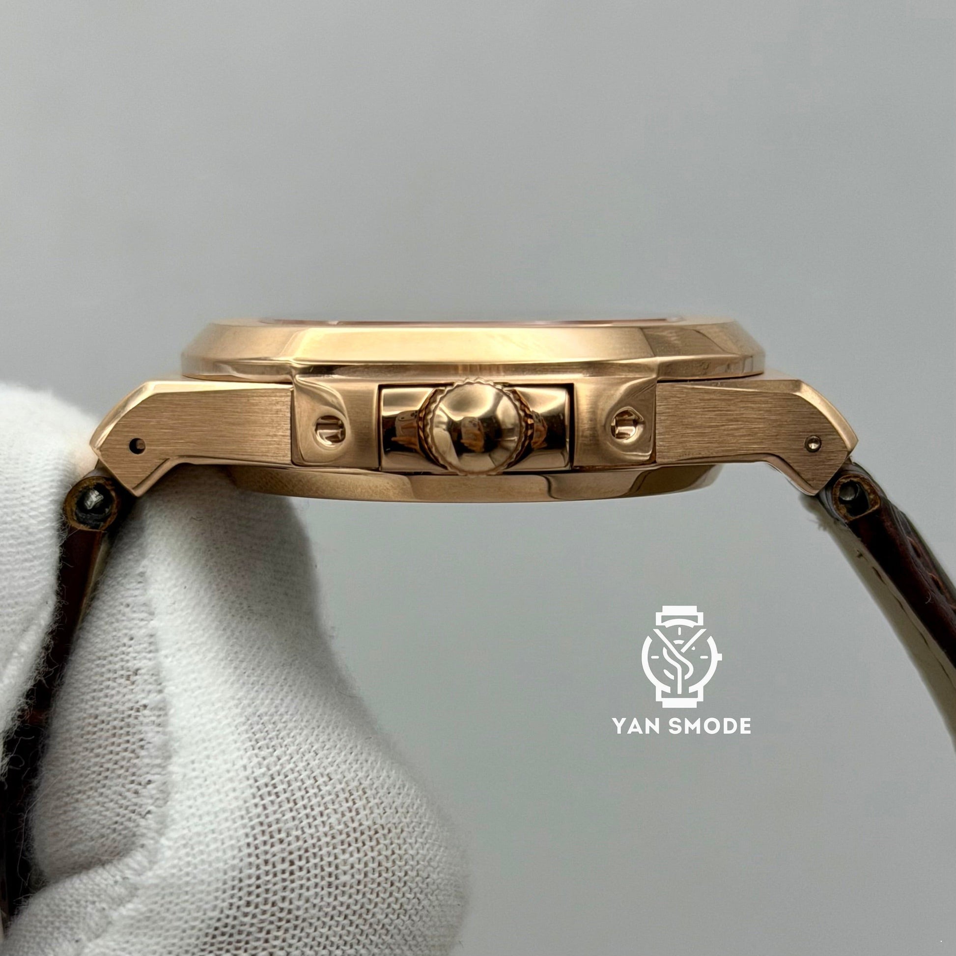 Nautilus Or Rose Caramel Ouverte Cuir Marron